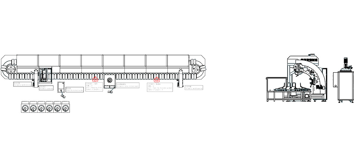 具有多種注料保護、自動監測計量泵工作狀態等功能,當料比例、泵轉數、料溫,壓力一旦異常,停止注料,防止廢品產生。系統控制器輸入編程后,流水線及澆注,脫模,合模等部件,均全自動智能操作運行,無需人工操作,并且定位精度高,運行流暢,操作簡單。攪拌轉速N=9400 r/min,混合均勻,較好彈性;